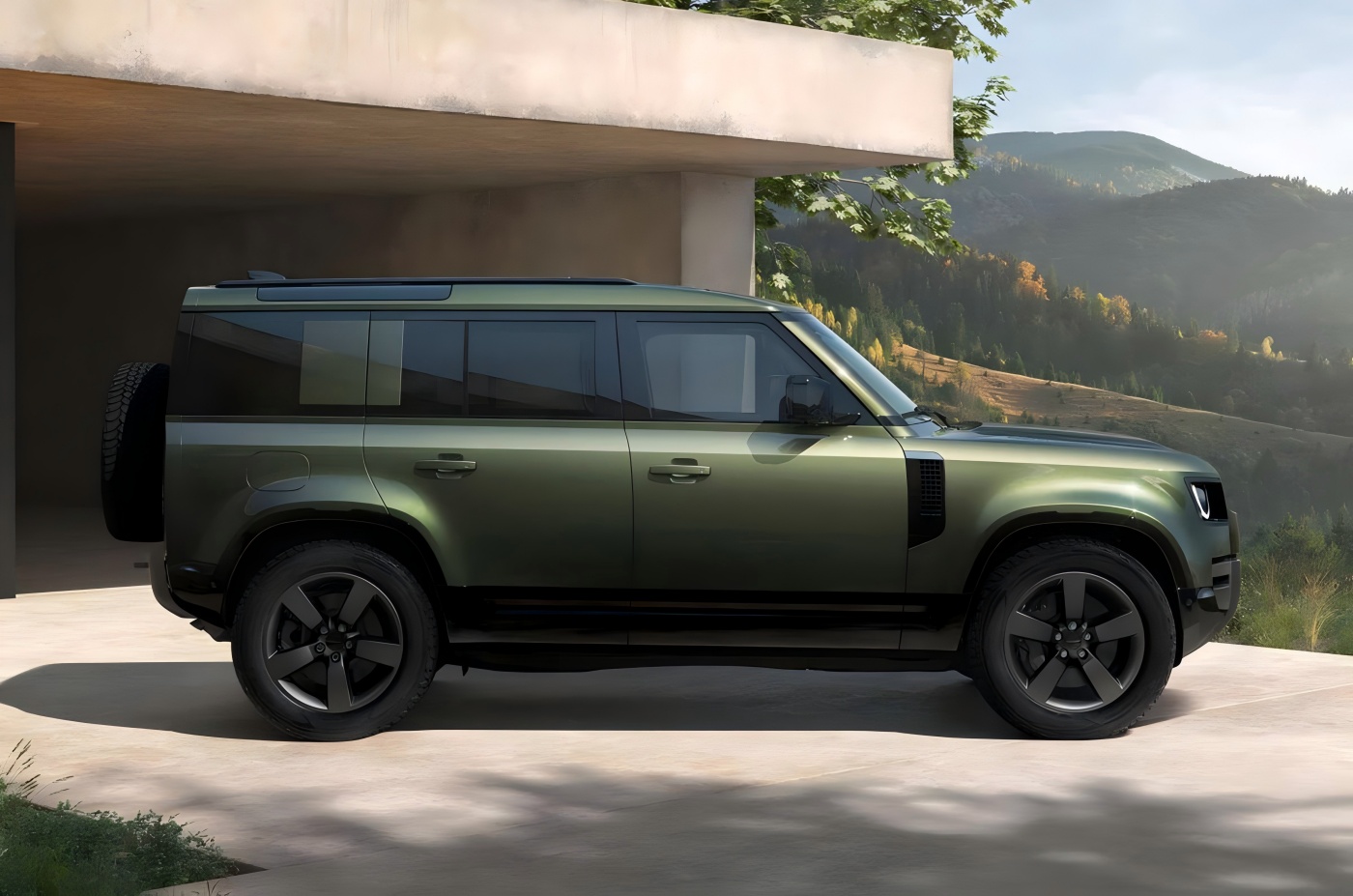 طرف نمای از طرف ، وسیله نقلیه جدید یک ظاهر طراحی کلاسیک مدافع لندرور را ادامه می دهد. نسخه 110 طراحی چهار درب را شامل می شود که شامل گلگیرهای گسترده جلو و عقب ، به همراه چرخ های پنج ضربه ای و کالیپرهای ترمز چند پیستونی است. ابعاد بدن بدون تغییر باقی می ماند ، با طول ، عرض و ارتفاع 5018/2105/1967 میلی متر و یک چرخ چرخ 3022 میلی متر.