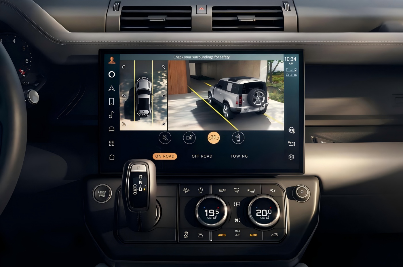 داخلی از نظر فضای داخلی ، طرح کلی وسیله نقلیه جدید تغییر زیادی نکرده است. این دستگاه هنوز هم با یک پانل ابزار کامل کریستال مایع و یک فرمان چند منظوره سه کاربردی ارائه می شود. صفحه نمایش چندرسانه ای در وسط کنسول مرکز از 11.4 اینچ به 13.1 اینچ ارتقا یافته است. در همین حال ، وسیله نقلیه جدید سیستم نظارت بر درایور را اضافه کرده است. این سیستم نظارت با مقررات اتحادیه اروپا GSR2 مطابقت دارد. اگر راننده تشخیص داده شود که به جاده پیش رو توجه نمی کند ، باعث هشدارهای صوتی و تصویری می شود. با این حال ، کمک راننده را می توان در گزینه های موجود در صفحه کنسول مرکز غیرفعال کرد. علاوه بر این ، سیستم کنترل کروز تطبیقی خارج از جاده لندرور نیز برای اولین بار در Land Rover Defender به عنوان یک ویژگی اختیاری ارائه می شود.