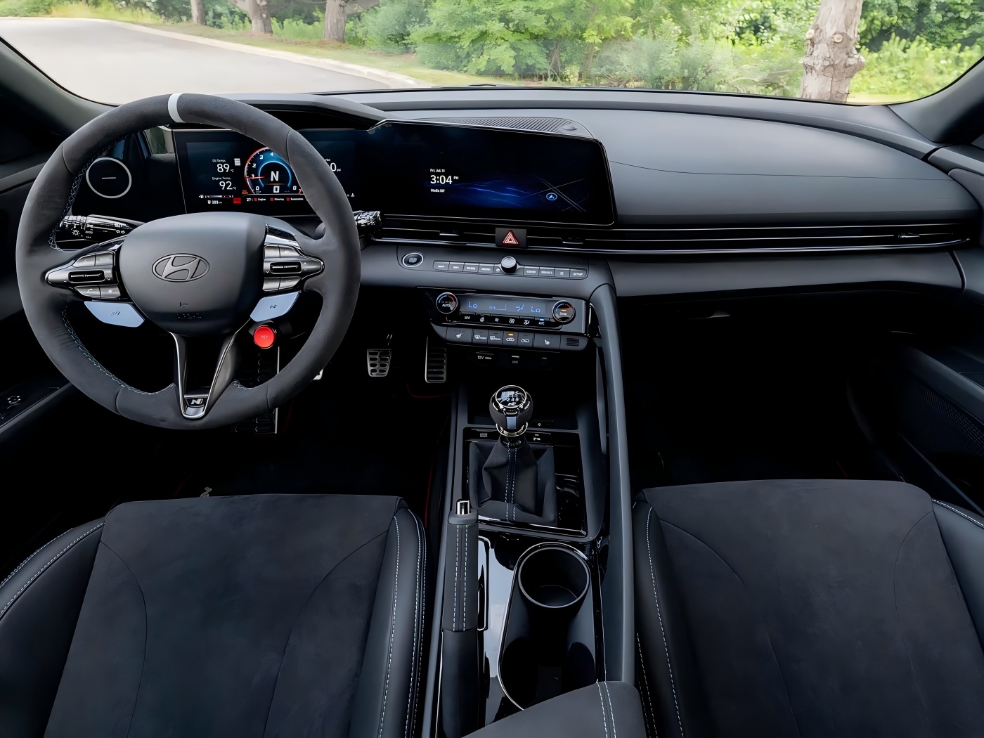 از نظر فضای داخلی ، طرح کلی خودروی جدید تفاوت چندانی با Elantra n ندارد ، اما مجهز به فرمان "N" N "با فرمان Alcantara با نشانگر موقعیت 12 است. در همین حال ، ردیف جلو مجهز به کمربند ایمنی آبی است ، آستانه های درب مجهز به N Performance Metal Sill Guards هستند ، و این خودرو همچنین دارای تشک کف عملکرد N و همچنین تعداد زیادی از کیت های داخلی Alcantara است. به عنوان مثال ، اهرم ترمز پارکینگ دستی ، اهرم شیفت دنده و صندوق عقب بازو در Alcantara پیچیده می شوند. سرانجام ، یک آرم "نسخه TCR" روی چراغهای دسته درب وجود دارد که پر از جذابیت عاطفی است.